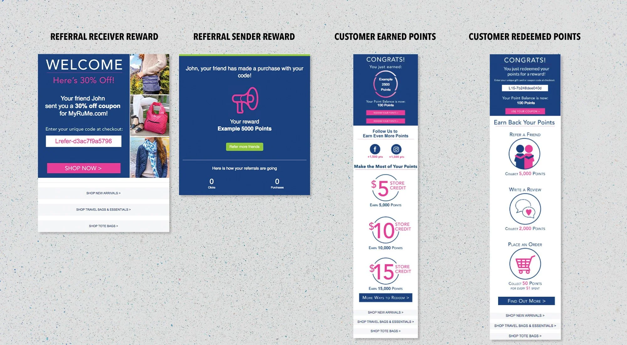 I needed to revamp RuMe Rewards emails that were sent to customers when they completed actions such as earning points or referring a friend. The previous emails were outdated and no longer fit the brand.